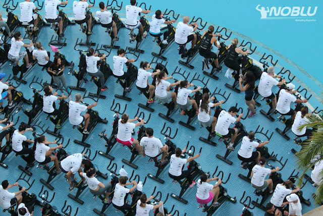 O visual é realmente incrível e chama bastante atenção, já que todas as bikes ficam dentro da piscina com vista para toda área verde do hotel, pessoal lindo e muita animação contou com a presença marcante do ator Raul Gazolla que está com peça teatral no Teatro Amil “Pressão Alta – Crônicas de Um Ator” que estará em cartaz até dia 02/06.